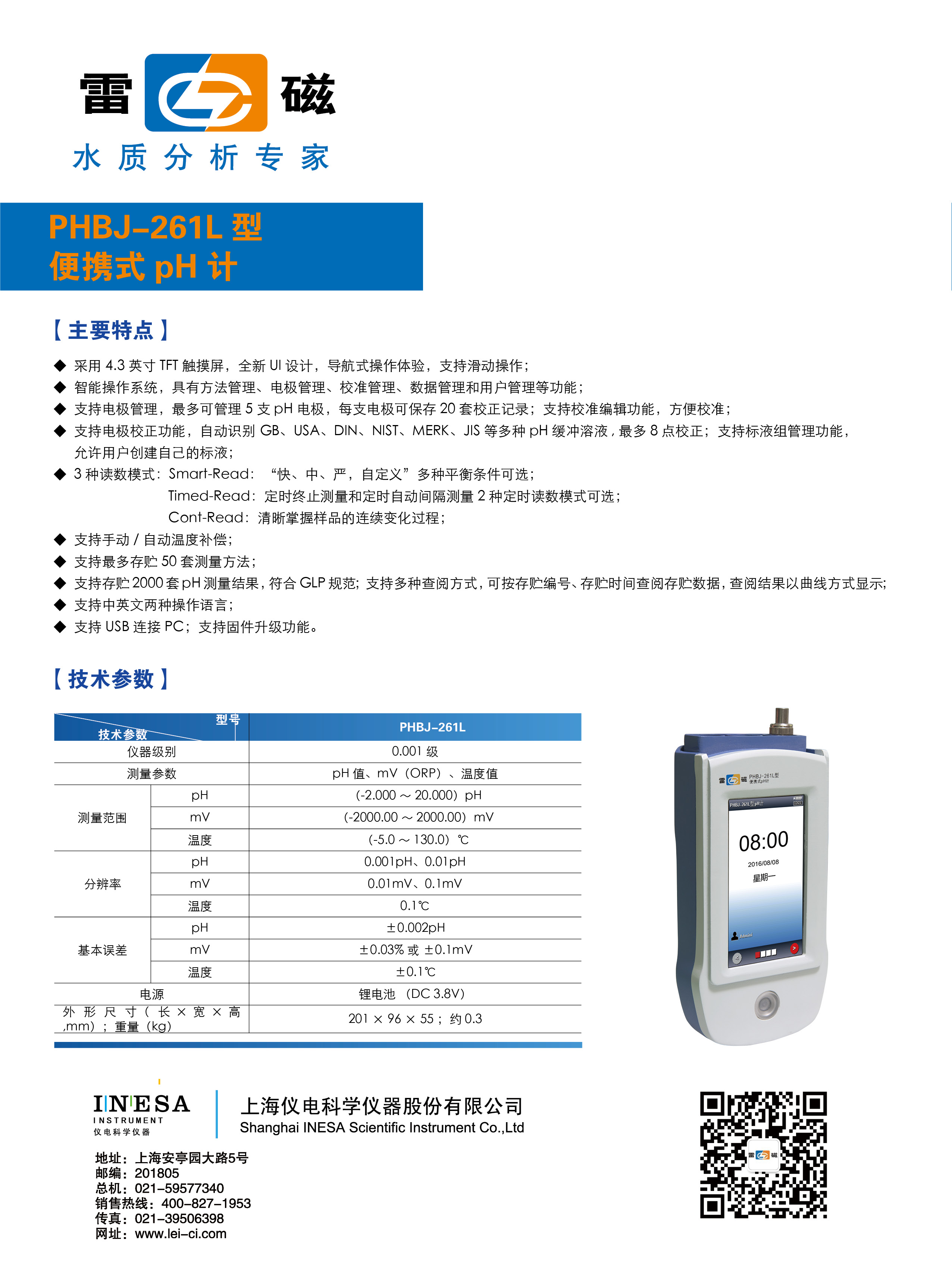 采用全新設(shè)計的外形、大屏幕LCD段碼式液晶,顯示清晰、美觀,具有自動標(biāo)準(zhǔn)緩沖溶液識別功能,具有識別4.00pH、6.86pH、9.18pH等三種標(biāo)準(zhǔn)緩沖溶液的能力,方便用戶使用。