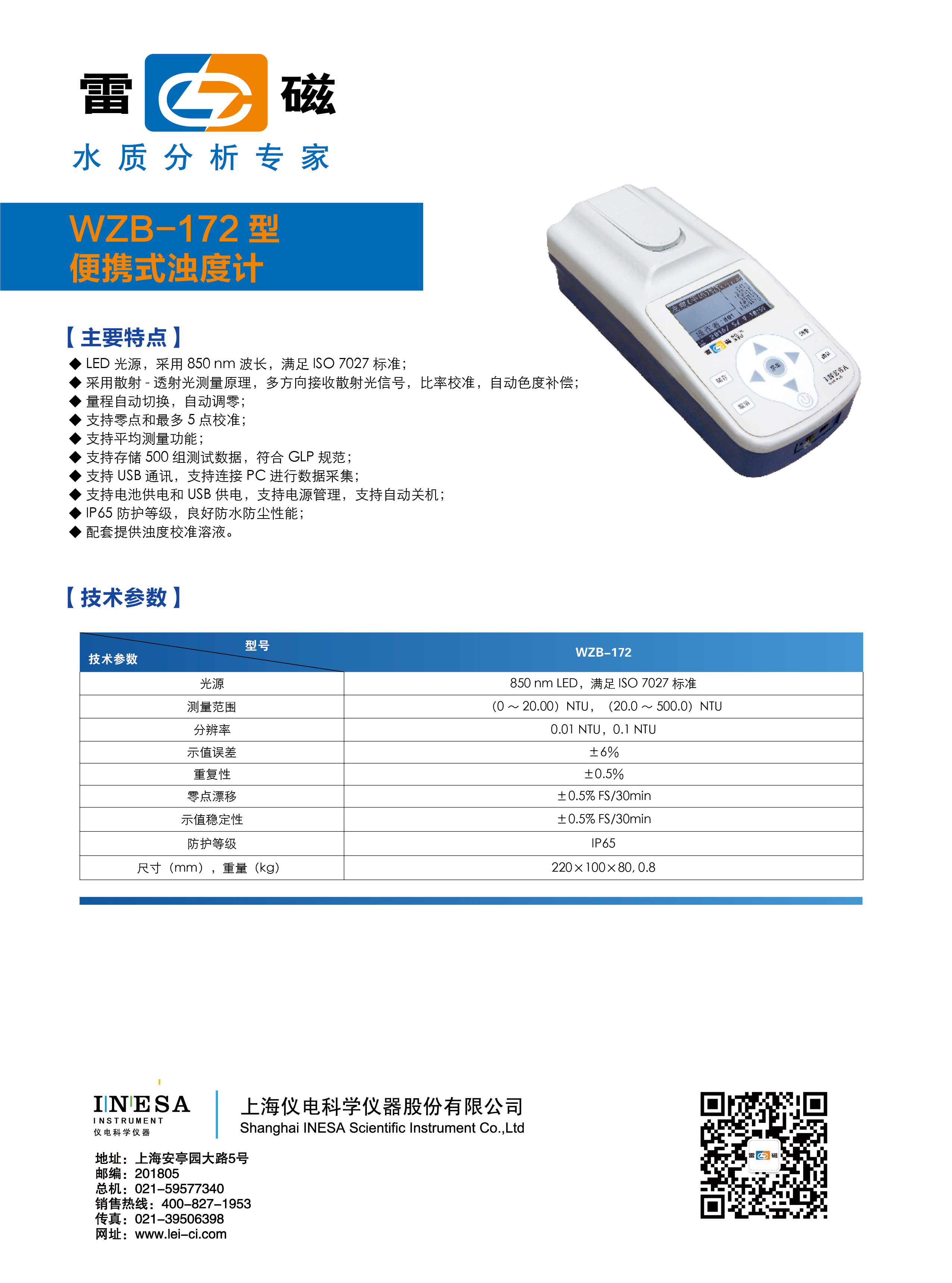留言板——上海雷磁便攜式濁度計WZB-172型