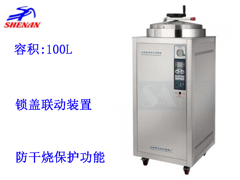 容積:100L; 斷水保護(hù)功能 ; 手輪式開蓋結(jié)構(gòu) ; 額定工作壓力:0.165Mpa; 自脹式密封 ; 滅菌結(jié)束自動報警